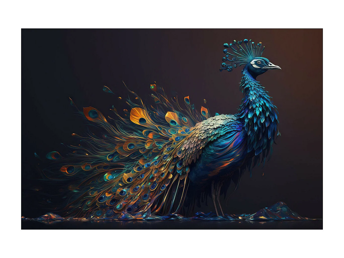 Tableau sur verre synthétique paon aquarelle 80x120 cm