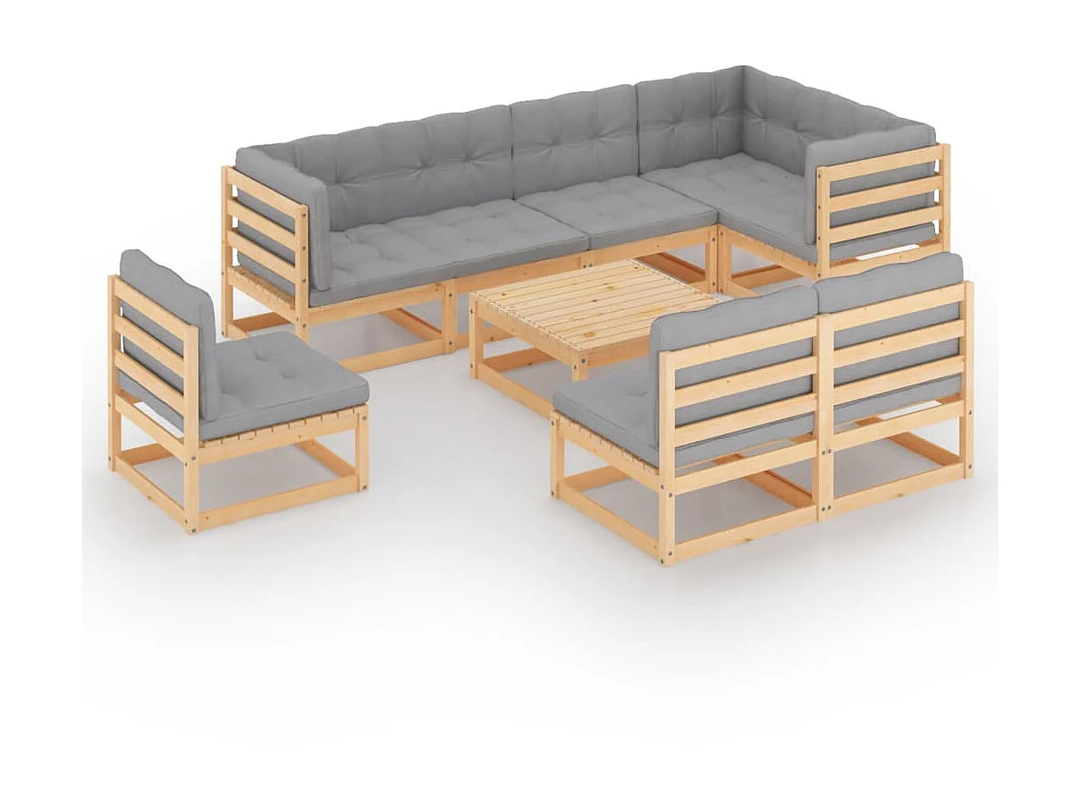 Salon de jardin 9 pcs avec coussins Bois de pin massif 41