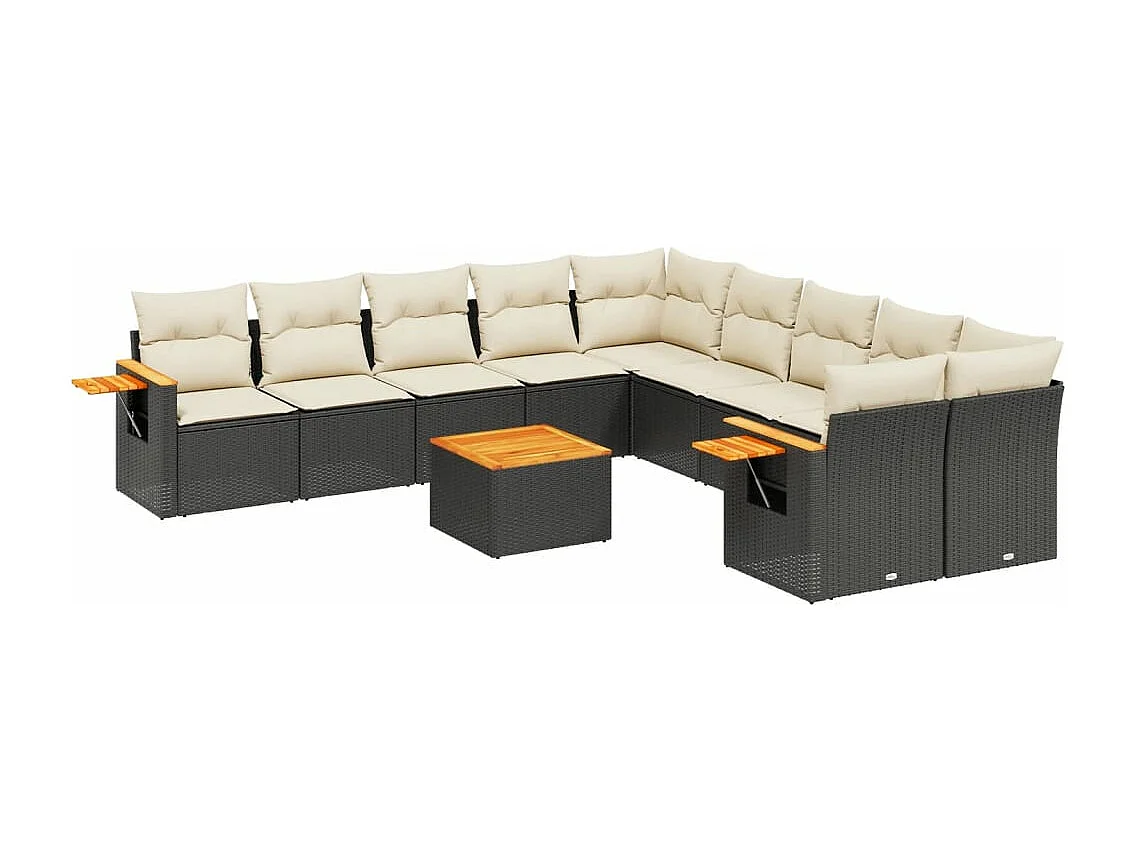 Salon de jardin 11 pcs avec coussins noir résine tressée