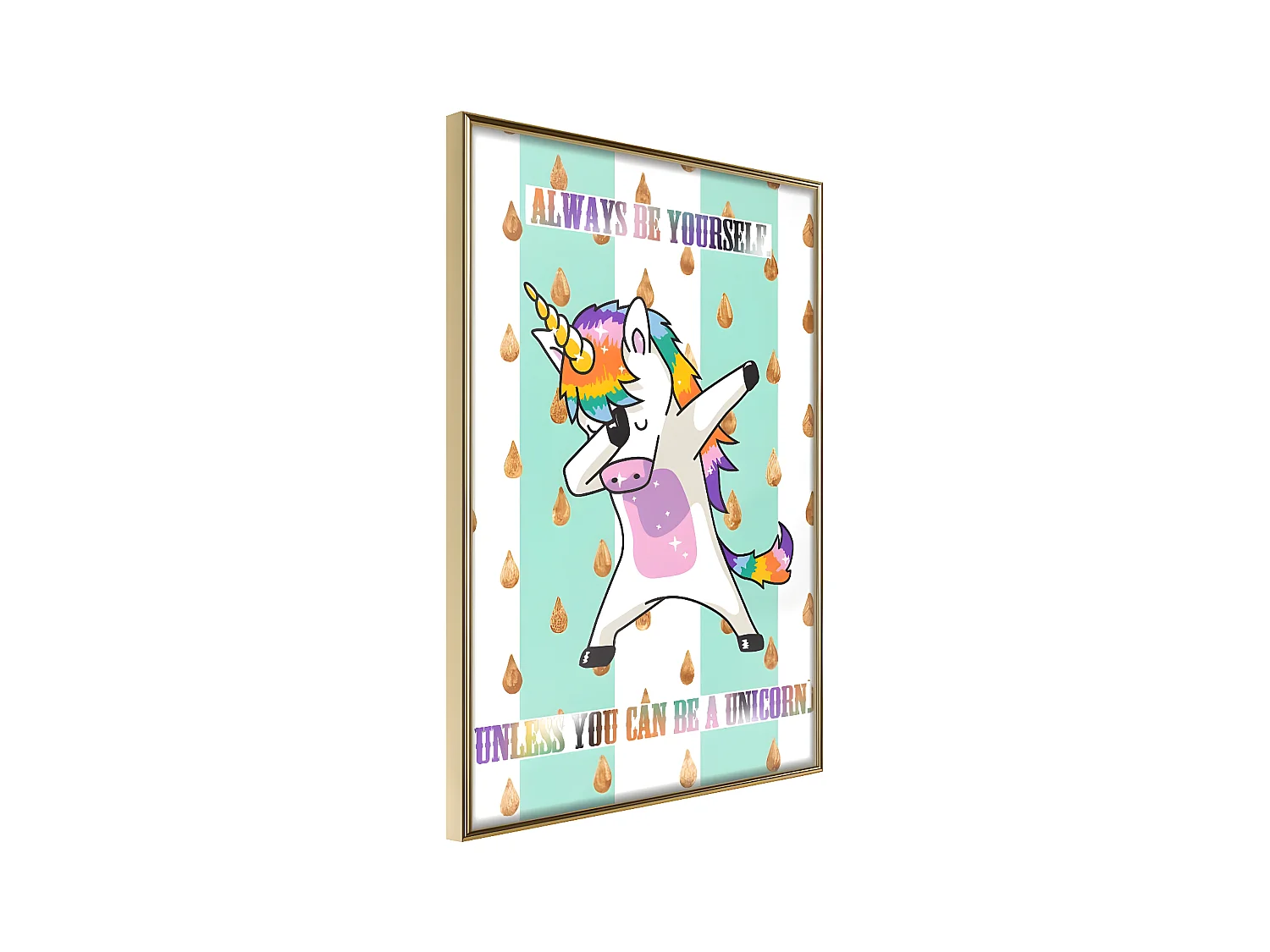 Affiche Murale Encadrée "Dabbing Unicorn" 21 x 30 cm Or
