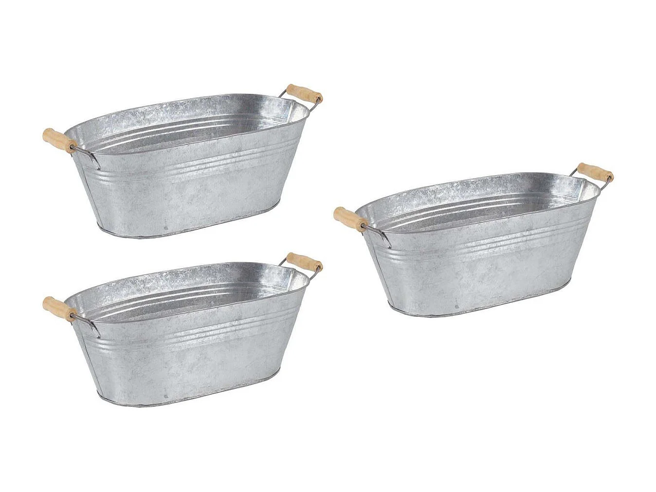 Jardinière ovale zinc et bois (Lot de 3)