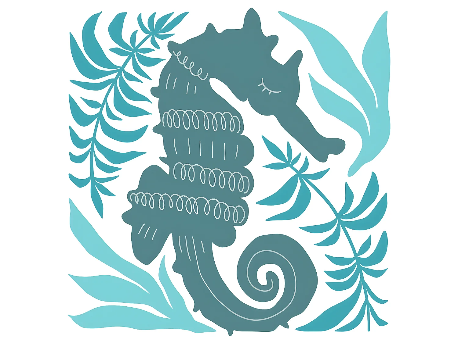 Tableau sur verre synthétique illustration hippocampe 90x90 cm