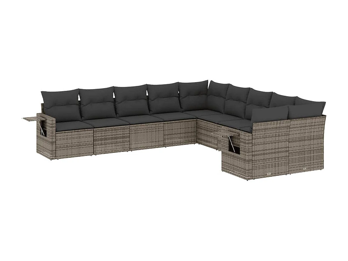 Salon de jardin avec coussins 10 pcs gris résine tressée